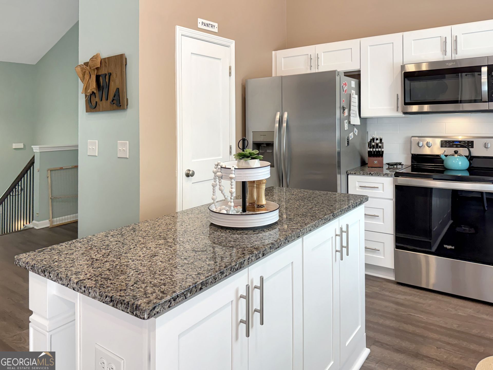 Tucked away in a private setting that feels more like country living than neighborhood life, this 4-bedroom, 3-bath split-level home sits on nearly half an acre with a wooded backdrop for added privacy. The main level features an open-concept layout connecting the living room, dining area, and kitchen perfect setup for everyday living and entertaining. The living room showcases a custom accent wall with an electric fireplace. The kitchen is equipped with granite countertops, stainless steel appliances, a pantry, and an island with additional storage and workspace. Down the hall are three bedrooms, including the primary suite. The primary bedroom offers a walk-in closet, while the en-suite bathroom includes a walk-in shower, separate garden tub, double vanities, and a linen closet. Two additional bedrooms and a full bathroom complete the main level. The lower level adds flexibility with a fourth bedroom, full bathroom, and a second living area/den perfect for guests or extended living space. This level also includes the laundry room and direct access to the oversized 2-car garage. While the home offers a more private, tucked-away feel, it is located within the Turtle Cove community, which includes access to Jackson Lake, golf, swimming, tennis, clubhouse amenities, dining, and 5 sandy beaches. Schedule your showing today!