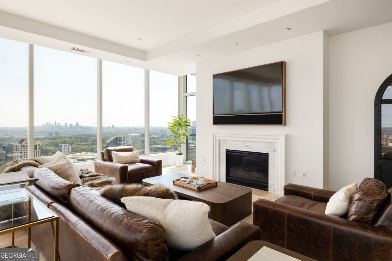 Welcome home to the Iconic South-East Facing penthouse of the Ritz-Carlton Residences of Buckhead - Atlanta's most prestigious address. This 4500 square-foot penthouse blends timeless sophistication with modern luxury, offering sweeping skyline views and the impeccable service synonymous with the Ritz-Carlton name. Step inside to a light-filled open layout wrapped in floor-to-ceiling windows, where elegant finishes and refined details set a tone of understated elegance. The views are truly unparalleled, with uninterrupted skyline views of Buckhead, Midtown, Downtown and Dunwoody. On clear days, to the East is Stone Mountain, and the North is the foothills of the Georgia mountains, including Red Top and Yonah mountain. Upon entry, you are greeted with the first of two main living rooms, with soaring 11 foot ceilings and custom oak floors, truly a show-stopping moment with views above the city. The secondary living room is a showcase for the Atlanta city skyline. The gourmet kitchen features top-of-the-line Viking appliances, custom cabinetry, and stone countertops - perfect for both everyday living and entertaining. The primary suite is a private retreat with a spa-inspired bathroom and generous walk-in closets, while the secondary bedroom suite provides comfort and privacy for guests. All the bathrooms are appointed with custom Carrera marble, and high-end finishes. A total of three bedrooms, three and a half bathrooms, over-sized laundry room with butler's entrance. Custom lighting and automated window shades in every room. Three outdoor terraces with impressive views. Additionally, the unit includes three premier parking spaces and multiple storage rooms. Residents enjoy world-class amenities, including a 24-hour concierge and valet, top-class security, heated pool, state-of-the-art fitness center, club lounge, and luxurious spa services. Every detail of the Ritz-Carlton lifestyle is designed to provide an unmatched level of comfort, security, and convenience. Located in the heart of Buckhead, you're steps from Atlanta's finest dining, designer shopping, and cultural experiences - all complemented by the elegance and service of the Ritz-Carlton brand. Discover refined urban living - where every day feels like a five-star escape.